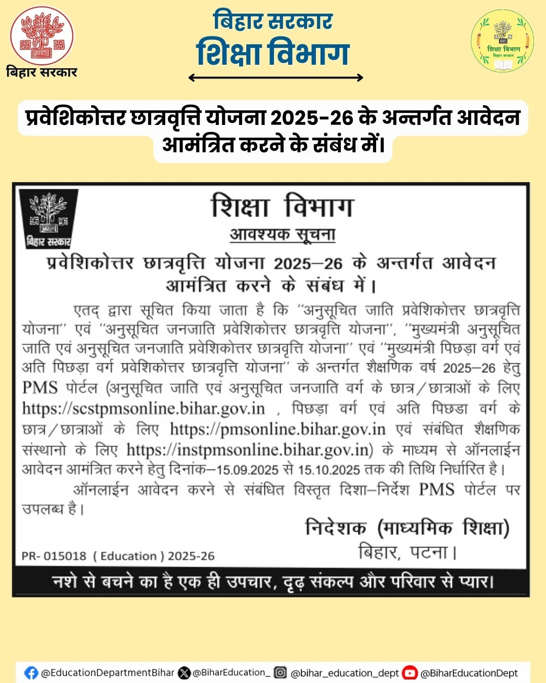 🚨 Bihar Post Matric Scholarship 2025-26 Important Links🚨